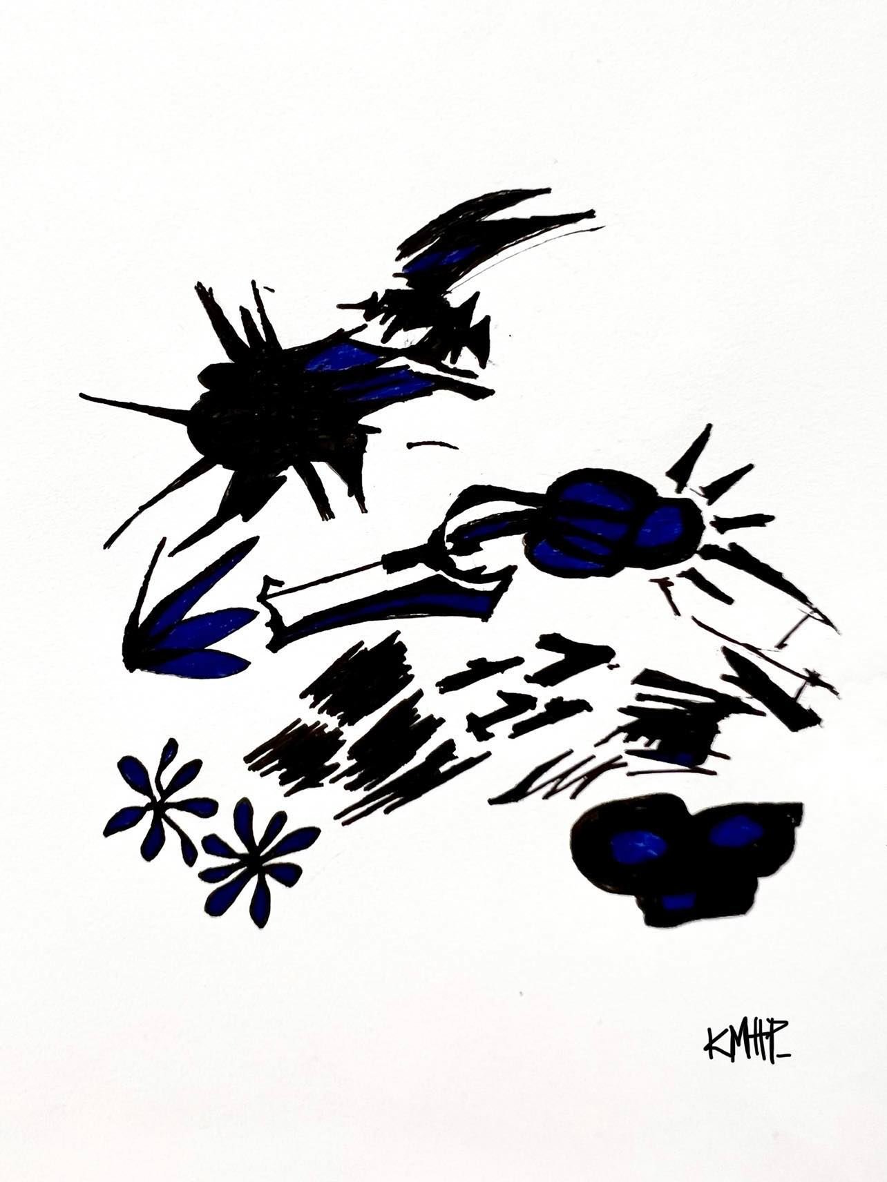 Blue highlighter and Black marker on scrap paper